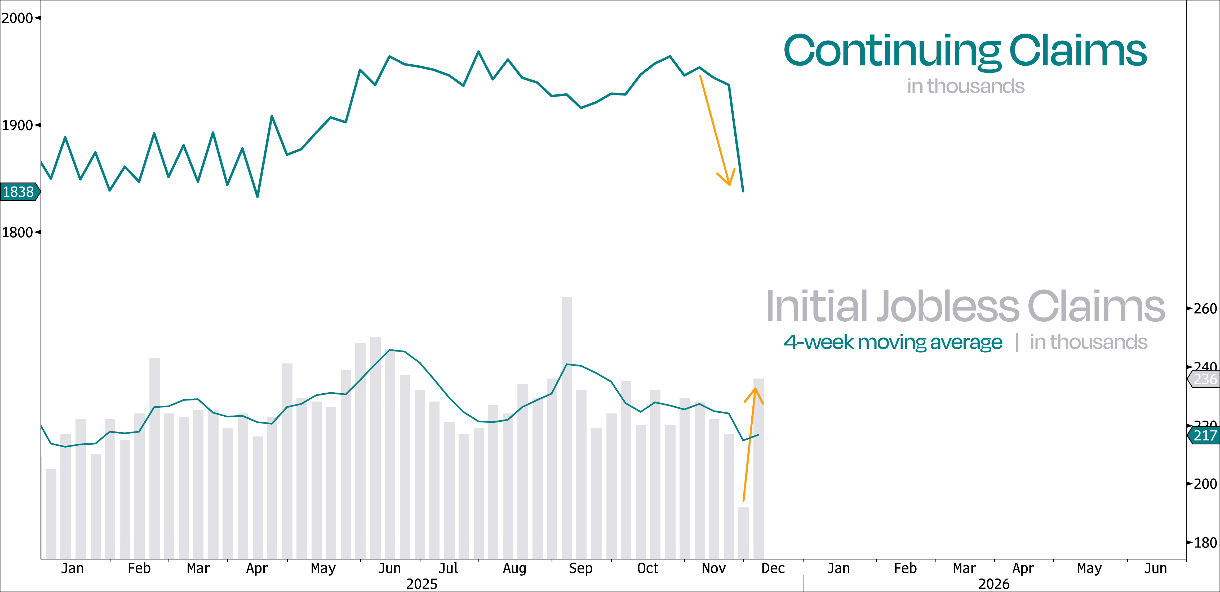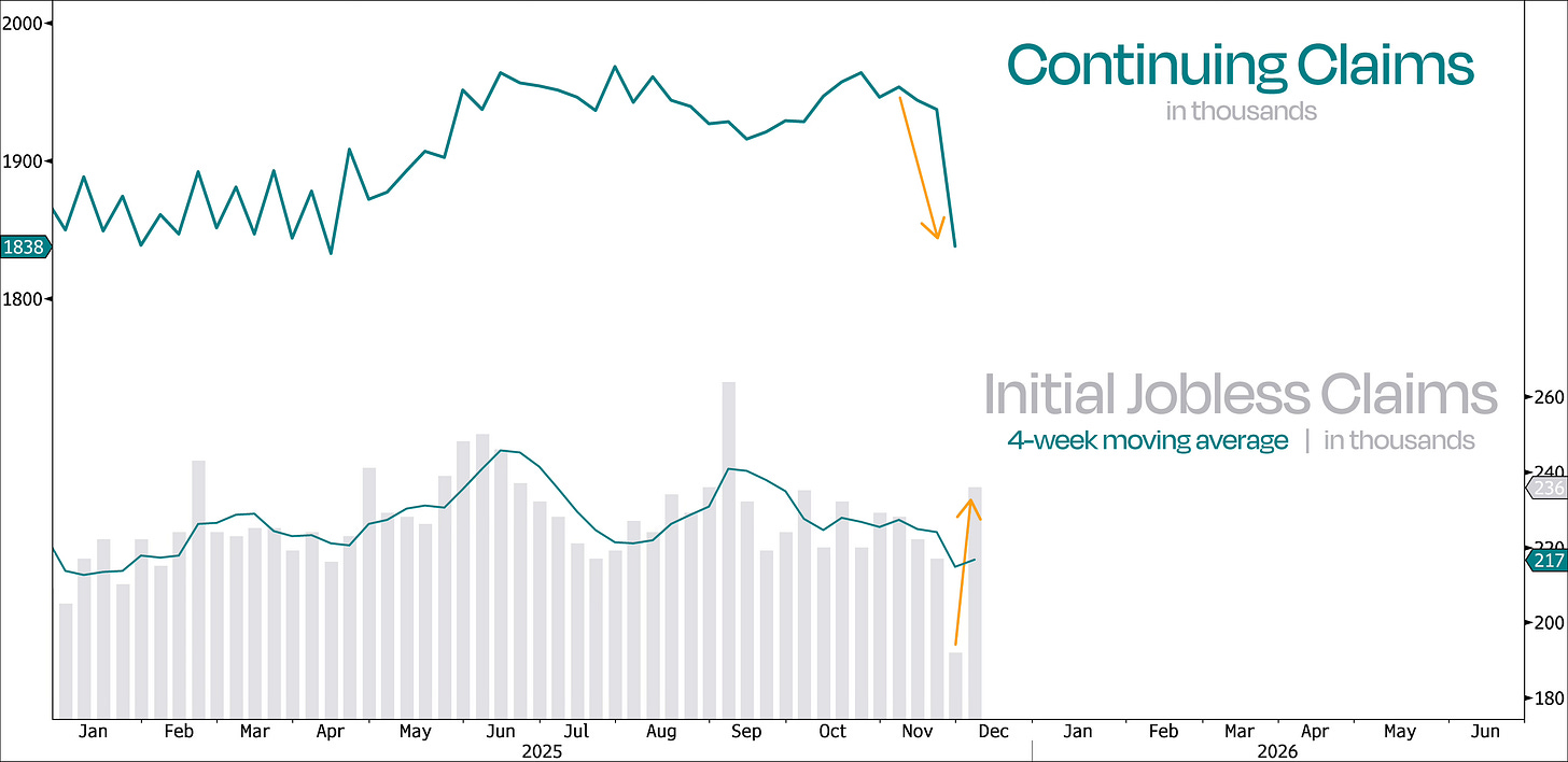 Last week’s Jobless and Continuing Claims show the kind of noise we’re talking about. Initial Jobless Claims jumped the most since 2020 — right after hitting a 3-year low the week before. At the same time, Continuing Claims fell by over 100k, the biggest drop in four years.