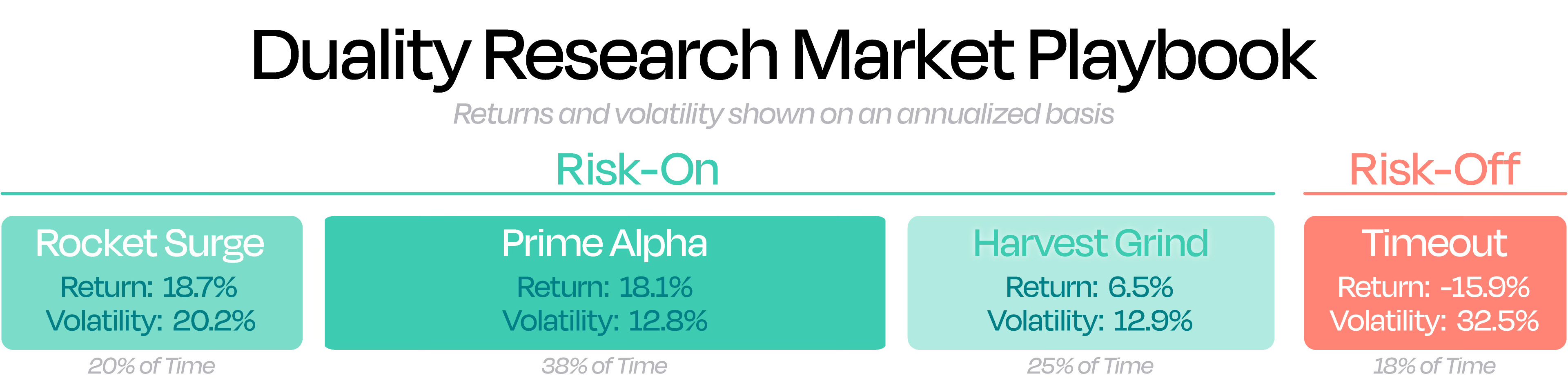 To summarize our approach at Duality Research: everything starts with understanding the market environment through our Proprietary Model — and identifying whether we’re in a Breadth Thrust Regime. That insight lets us clearly distinguish between risk-on and risk-off markets.