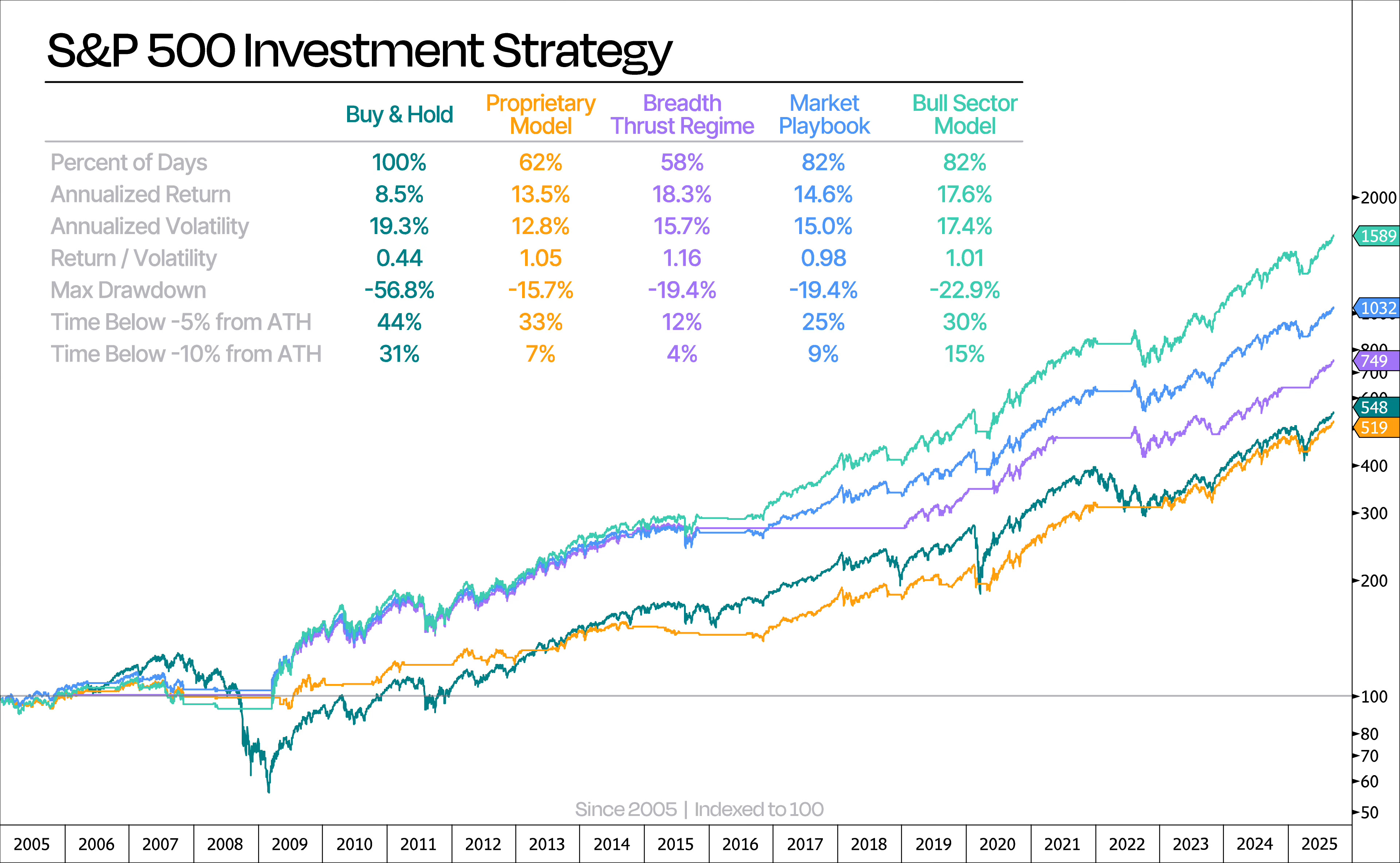 The chart below shows all our strategies side by side, along with a table that breaks down the key performance figures at a glance.