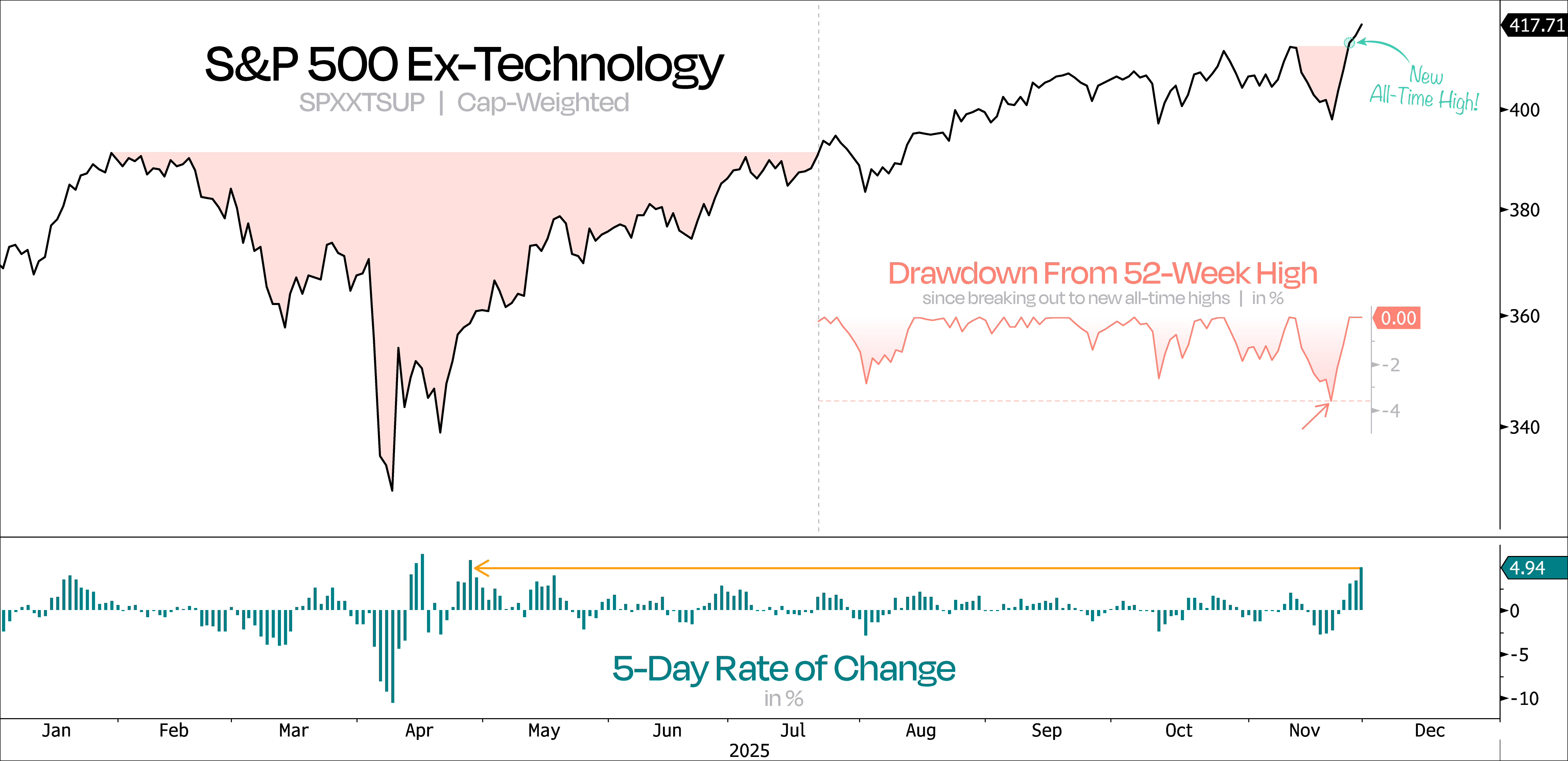 Meanwhile, Technology is still over 6% away from its own new highs.