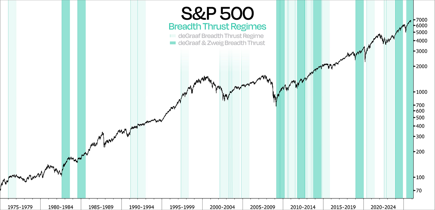 The last time we got a snapback this powerful was in November 2023, when the S&P 500 ripped higher off its lows after a 10% correction. And perhaps more importantly, a Zweig Breadth Thrust followed shortly after.