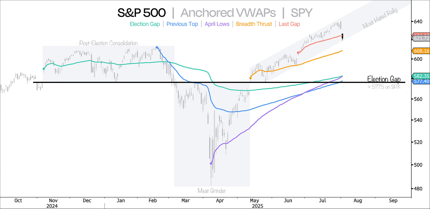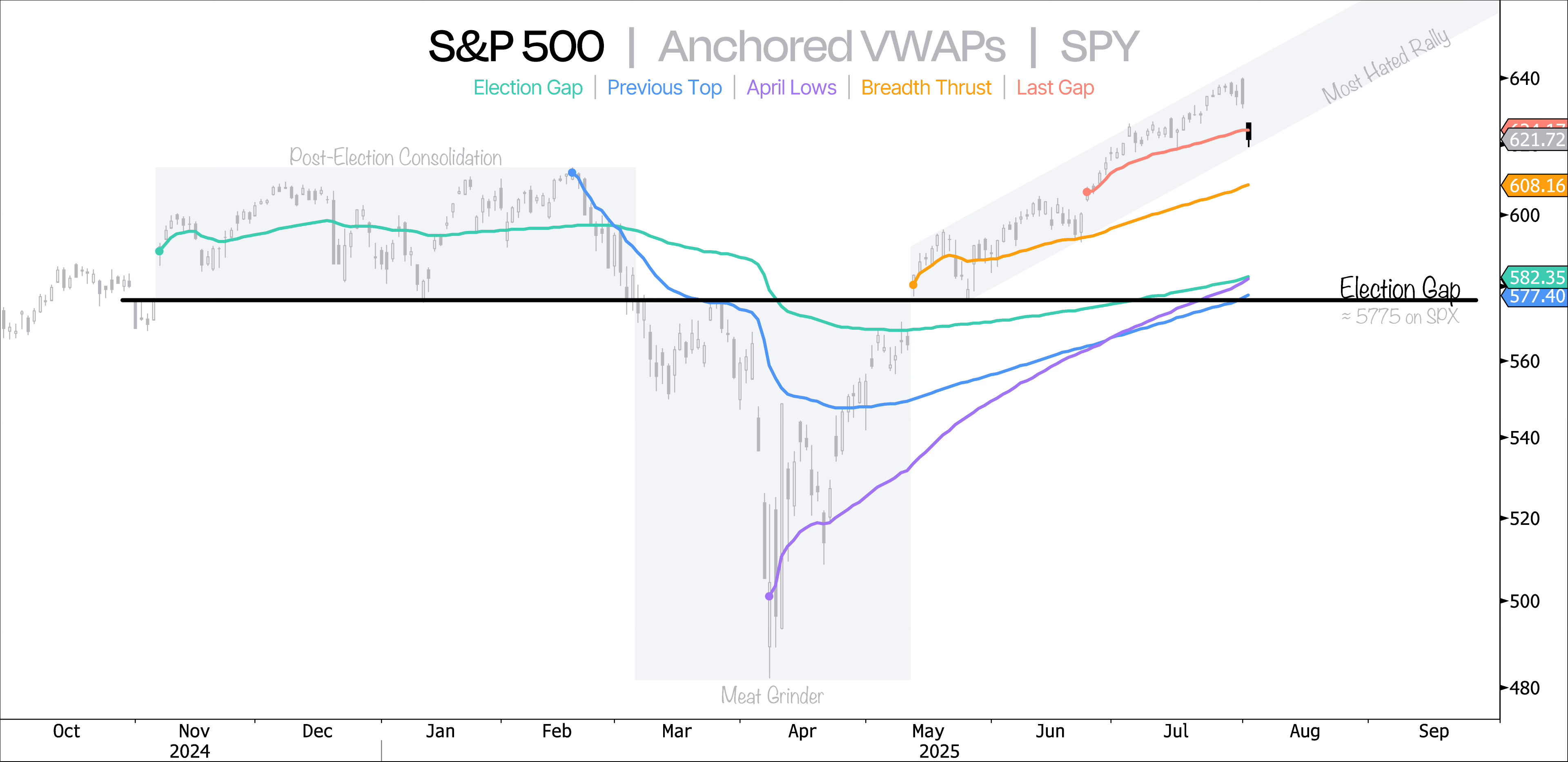 The one we’re really keeping an eye on right now is the orange VWAP from the May 12 gap. Why? Because that day was a turning point, where the S&P 500: