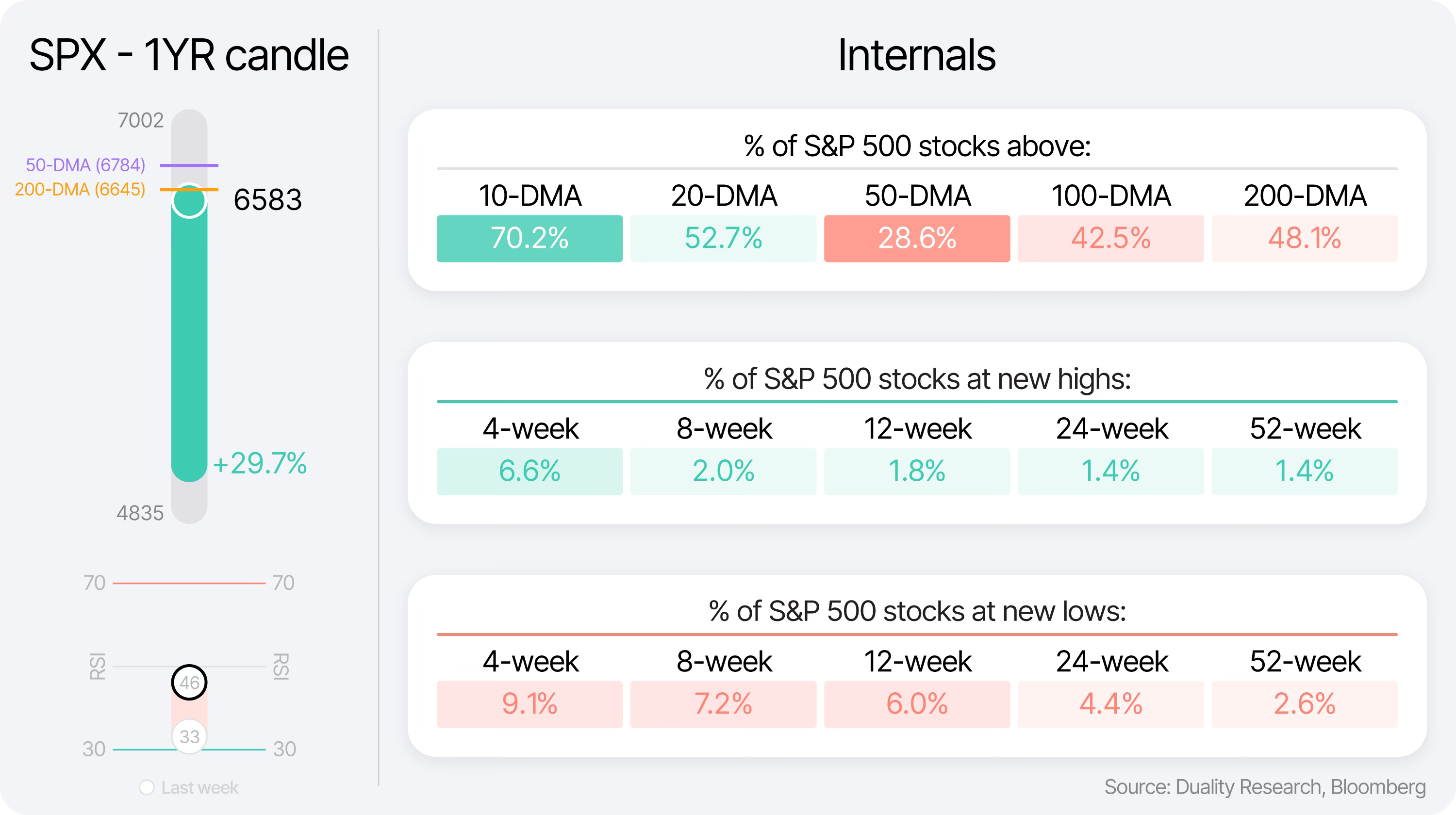 Bottom Right: This is where we show the new highs and new lows across several timeframes, giving you a sense of momentum and trend shifts.